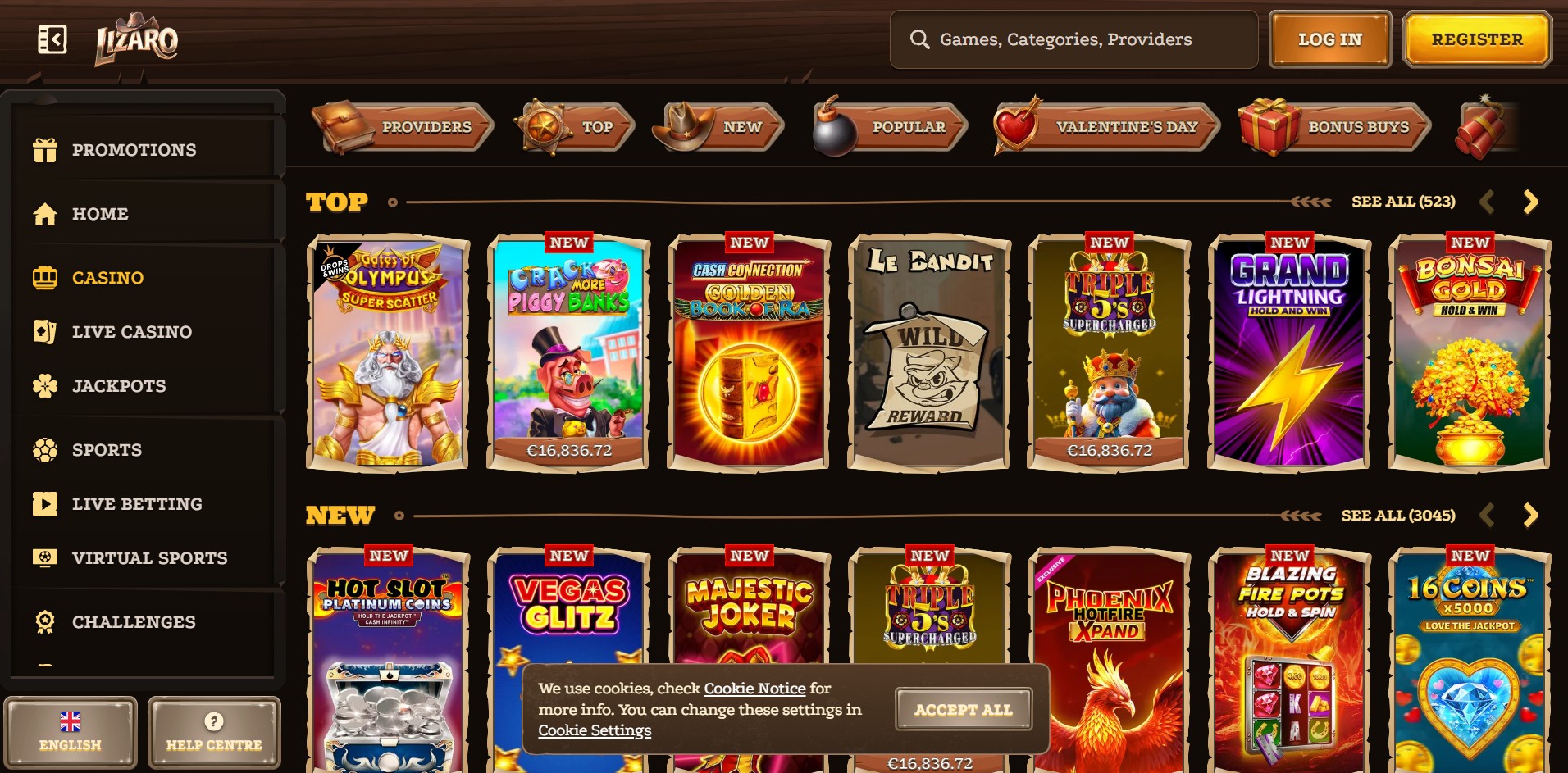 Lizaro stands out for its massive game library, featuring over 3,000 titles across slots, jackpots, table games, and instant-win options, along with a premium live dealer section powered by top providers.